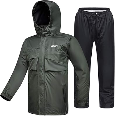 ILM Motorcycle Rain Suit for Men Waterproof Resistant Raincoat 6 Pockets 2 Pieces Packable Rainwear Jacket and Pants Model RS02